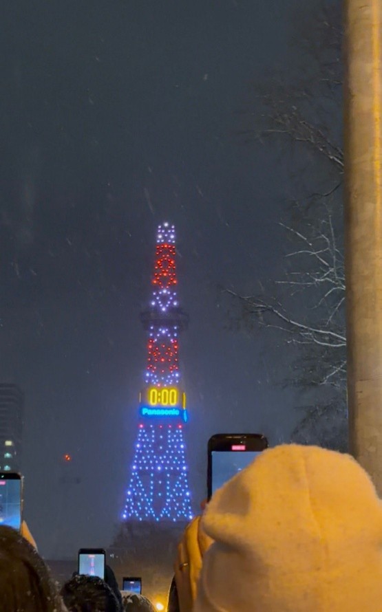 日本では、お正月は家族と静かに過ごす文化があります。外国人である私たちは年越しを祝える場所を探し、札幌テレビ塔でカウントダウンをすることにしました。花火はありませんでしたが、大雪の中でも多くの人が集まり、とても特別な雰囲気でした。雪が降る中、みんなで新年を迎えた時間は、心に残るひとときとなりました。